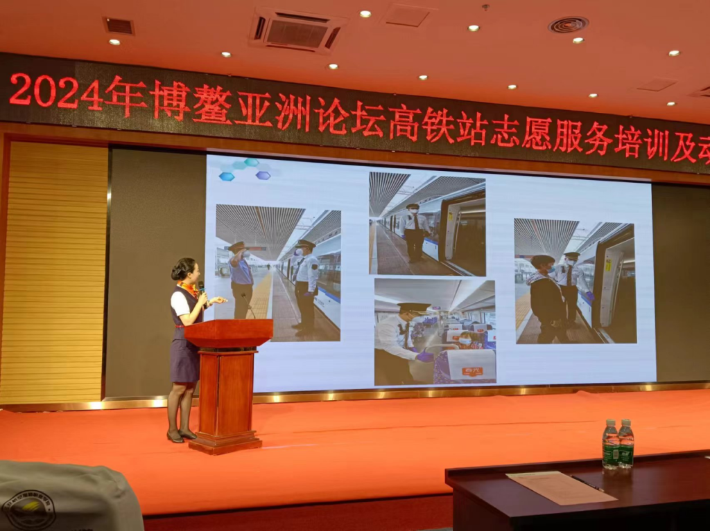 专项动员鼓士气。博鳌亚洲论坛期间,专门召开誓师大会,邀请三亚站、海南动车队的领导和教员现场指导,志愿者们当场立下“安全零差错、服务零投诉”的誓言,用行动为论坛护航。