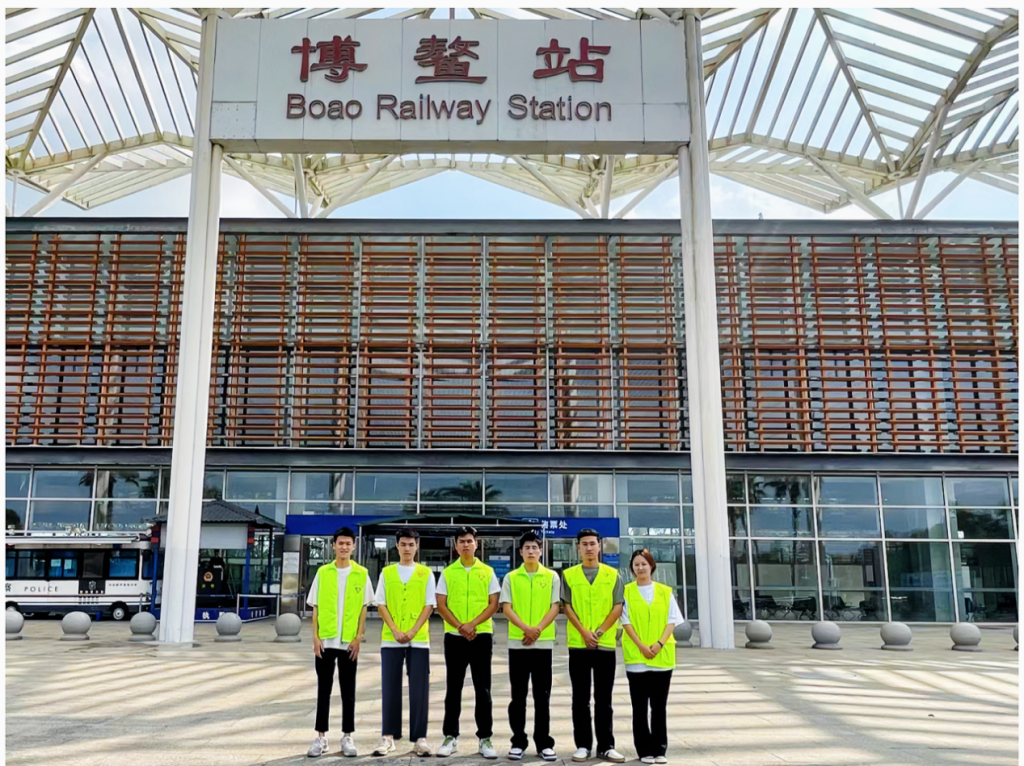 在海南环岛高铁的候车厅、检票口、站台边,在博鳌亚洲论坛的保障现场,在节假日旅客出行的高峰时段,总能看到志愿者们穿着蓝白志愿服的身影。